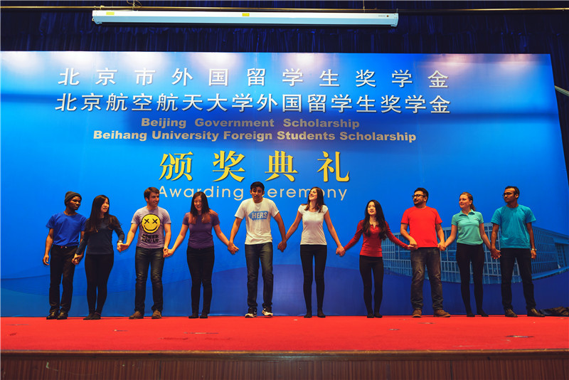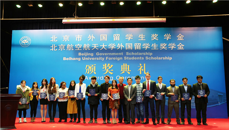 2016年1月7日下午,北京市—北航外国留学生奖学金颁奖典礼暨新年演出在校学术交流厅举行。国际交流合作处、教务处、国际学院负责人与导师代表,留学生代表等共300余人参加了颁奖典礼。典礼由国际学院副院长、校外国留学生奖学金评定委员会秘书长伊小素主持。