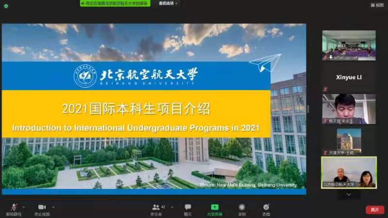 12月4日,国际学院面向浙江诸暨荣怀学校的国际学生开展本科生线上宣讲。首先由国际学院介绍北航的学校概况、学科优势、特色专业、2021年本科留学生招生项目以及留学北航的大学生活。来自电子信息工程学院的李奕晗副教授从学院发展概况、师资力量、传统优势学科、前沿科研领域、未来发展方向等多个角度,为同学们介绍了电子信息工程学院及相关专业。宣讲结束后,同学们围绕就业、奖学金、住宿等方面与老师们进行了热烈的互动交流。