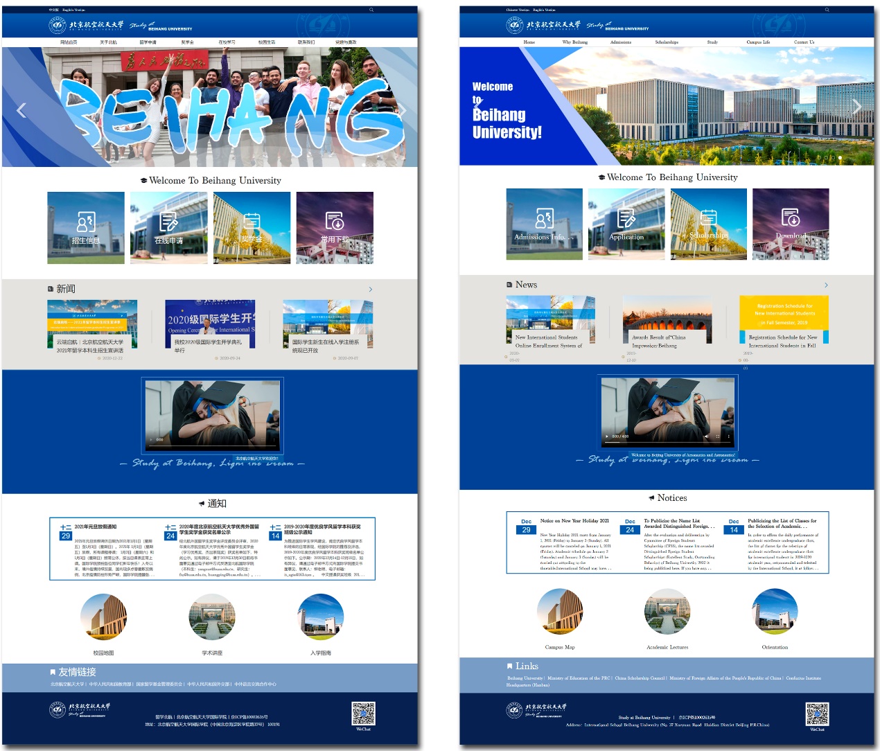 北航国际学院 “留学北航”官网(http://is.cqjj8.com),作为北航国际教育重要宣传窗口之一,为海内外留学申请者和在校留学生提供留学北航各类信息服务,展示北航国际教育及国际化校园风采。2021年新年到来之际,北航国际学院 “留学北航”新版官网中英文双语版全新升级上线。
