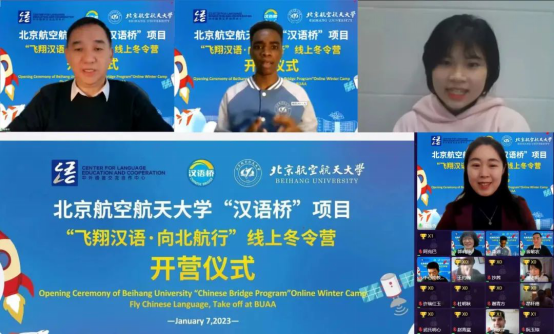 2023年1月7日,由教育部中外语言交流合作中心主办、北京亚洲成人在线一二三四五六区承办,以“飞翔汉语·向北航行”为主题的“汉语桥”线上团组交流项目在我校正式开营。自项目报名启动以来,吸引了来自英国、俄罗斯、塔吉克斯坦、巴基斯坦、日本、韩国、越南等23个国家的1500余名学生报名。经过择优录取,17个国家的近400名学员与老师们相聚云端,共同开启了为期8天的线上冬令营时光。