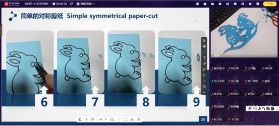 与上年度冬令营项目相比,本次中文学习主题增加了丰富多元的新主题,如“北航欢迎你”、“航天员的太空生活”、“北斗‘智领’交通”、“走进北京大兴国际机场”等,课程内容紧随中国航空航天发展步伐;文化体验主题与中文学习相辅相成,邀请航空学院、宇航学院、生物医学工程学院的专家教授带领学生“云参观”航空航天博物馆,讲授“月宫一号”空间基地生命保障人工闭合生态系统地基综合实验项目,讲解小卫星研发的意义和“北航亚太一号”小卫星研制过程,阐述北斗三号全球卫星导航系统服务全球、造福人类的时代意义。此外,在中国书画和中国剪纸文化体验课程上,授课教师极富创意地将中国传统艺术与航空航天文化结合,给学员们带来了耳目一新的体验,激发了他们的创作欲望。来自日本的安藤彩夏同学表示,通过学习“天宫”“玉兔”“嫦娥”“祝融”等中国航天飞行器、探测车的名称和故事,既了解了中国传统文化的浪漫情怀,又体会到了现代科技的魅力。”