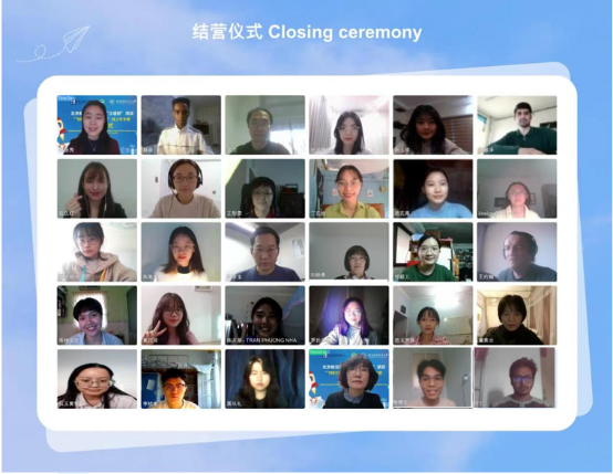 在结营仪式上,来自塔吉克斯坦的李敏泽作为优秀学员的代表发言,他表示:通过“汉语桥”线上项目,不但了解了中国的传统节日文化、中国剪纸与书画,更了解了中国现代科学技术的发展趋势,认识到了中国在各个领域的发展,并深深感受到了北航教授们的努力和热情,在学到知识的同时,有很多难忘的时刻。认识了很多国家的学生,通过交流也开阔了眼界。对老师们的努力付出、精心准备表示感谢。本次项目遴选出了97名优秀学员,他们纷纷以视频、文字的方式表达对参加本次冬令营项目的收获以及感谢之情,并为即将到来的中国新年送上了自己的祝福。汉语培训中心主任郭莉萍对学员们圆满完成线上学习和体验表示祝贺,并对同学们认真学习的态度和强烈的求知欲表示充分肯定,欢迎大家到北航体验更多的精彩!